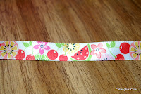 I had some fabric I bought to make some dresses but never got around to yet....I just love all the bright colors and cherries. I just happened to have ribbon that matched perfectly.